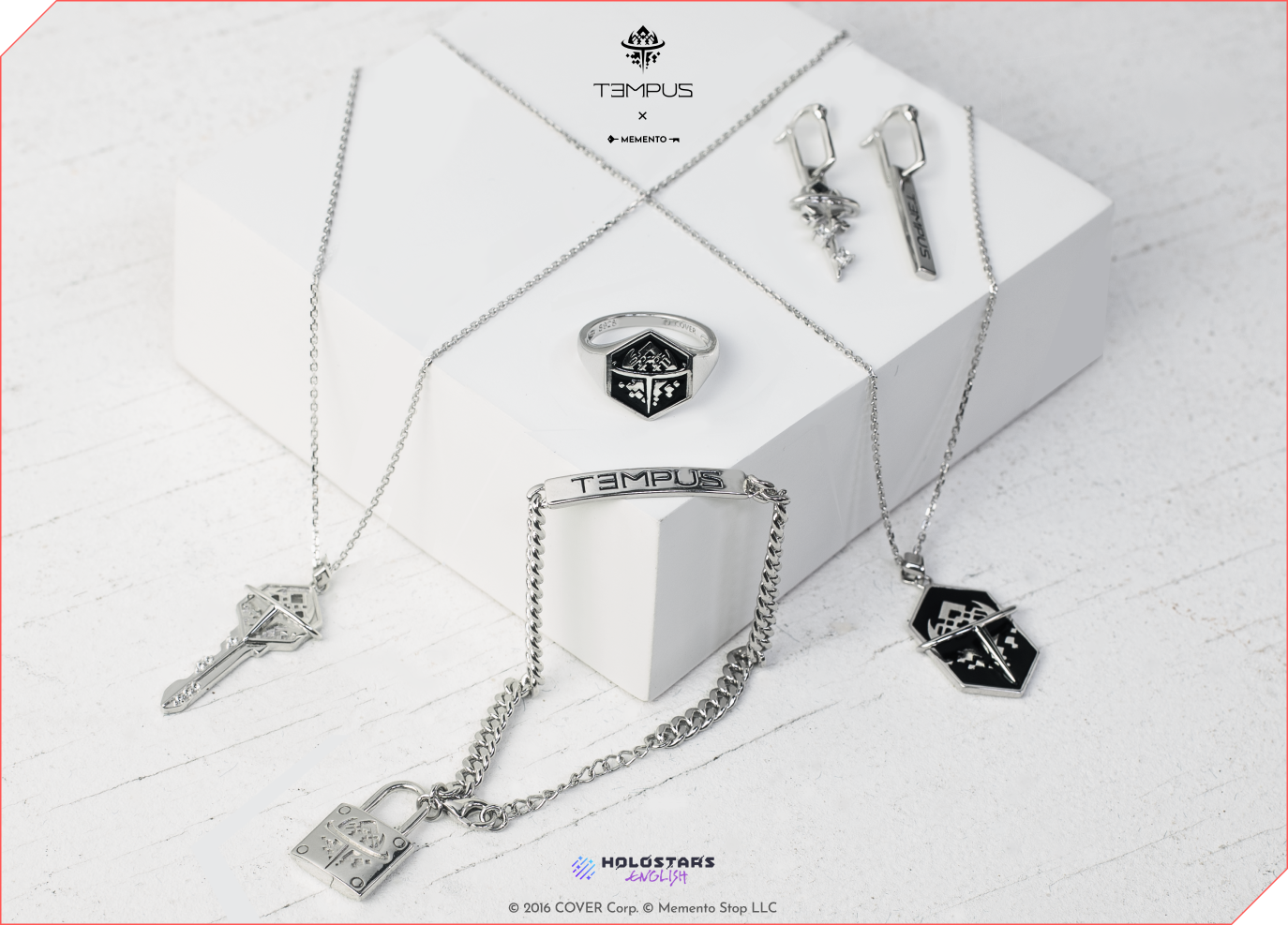For Memento’s first collaboration with Holostars English -TEMPUS-, we drew inspiration from Guild TEMPUS’s logo, reimagining it in unique ways.
