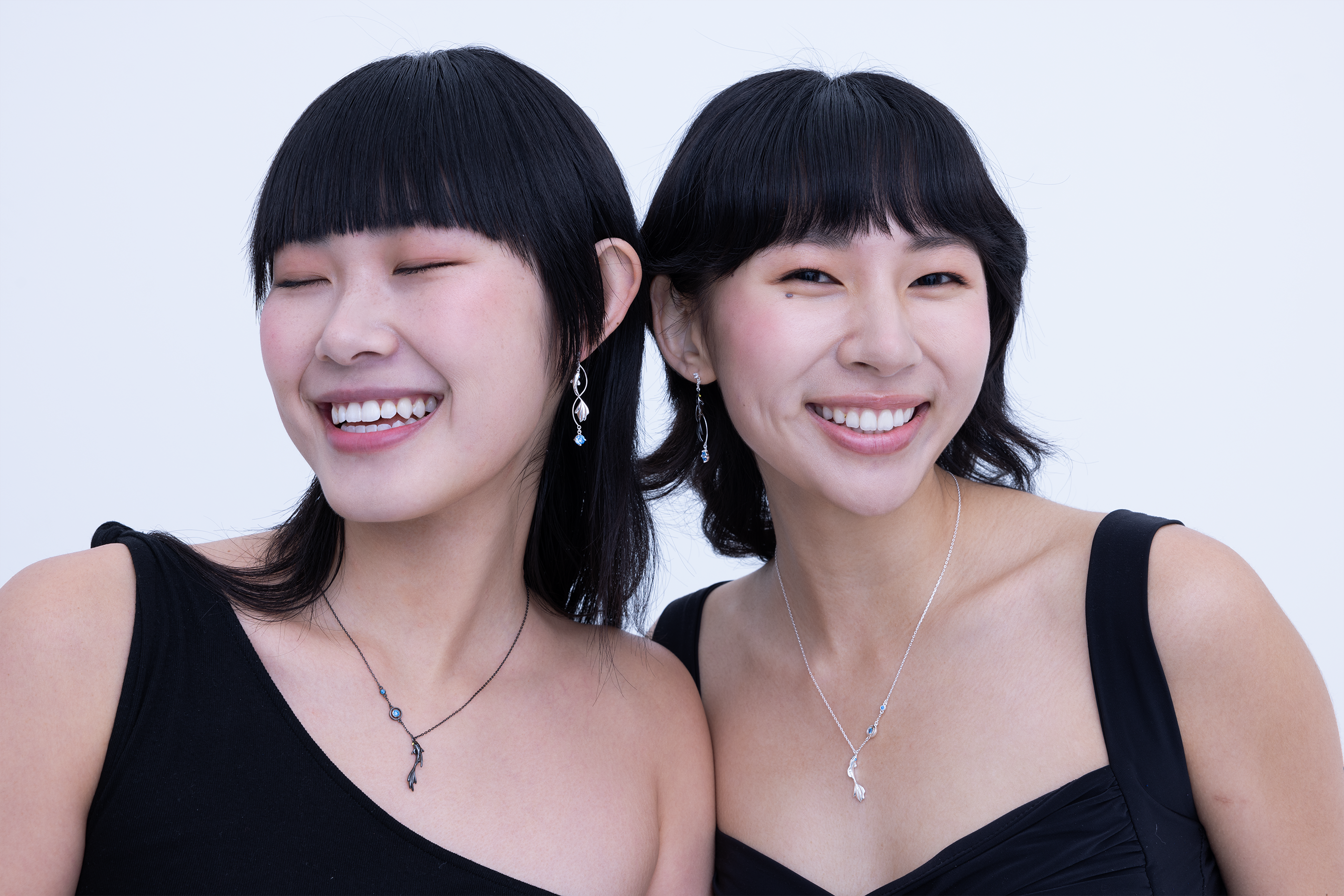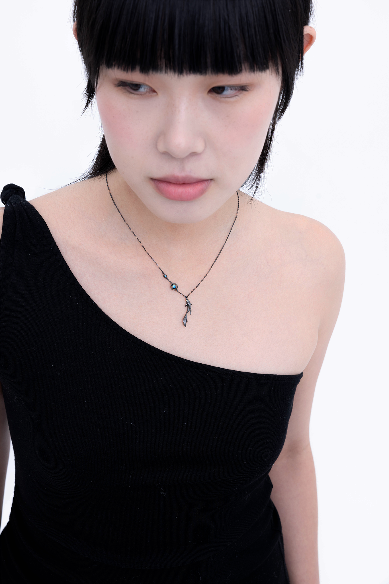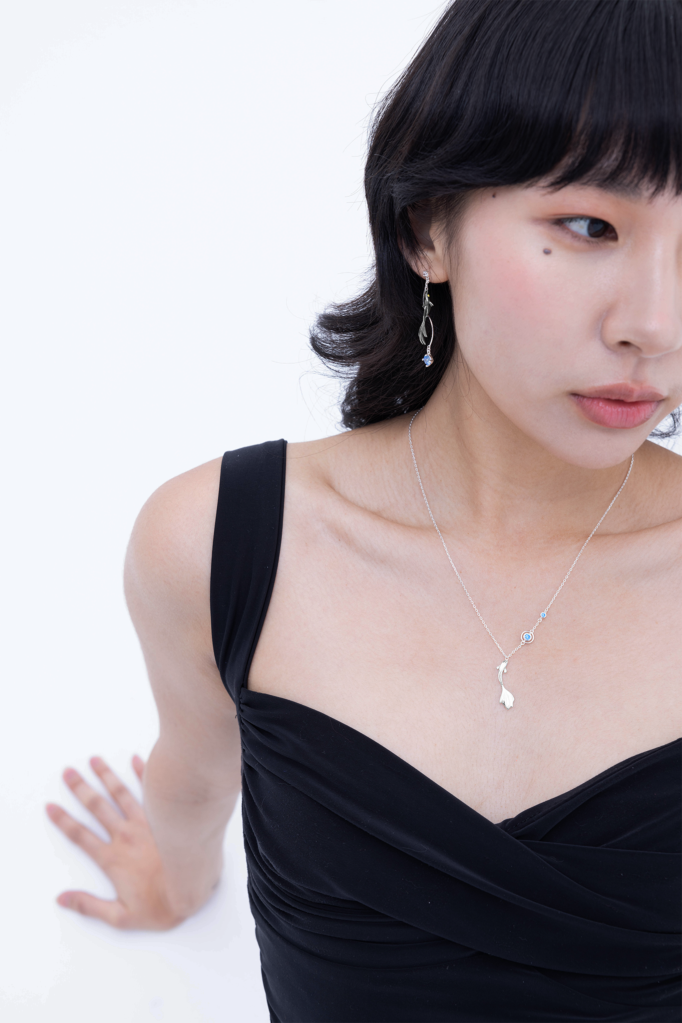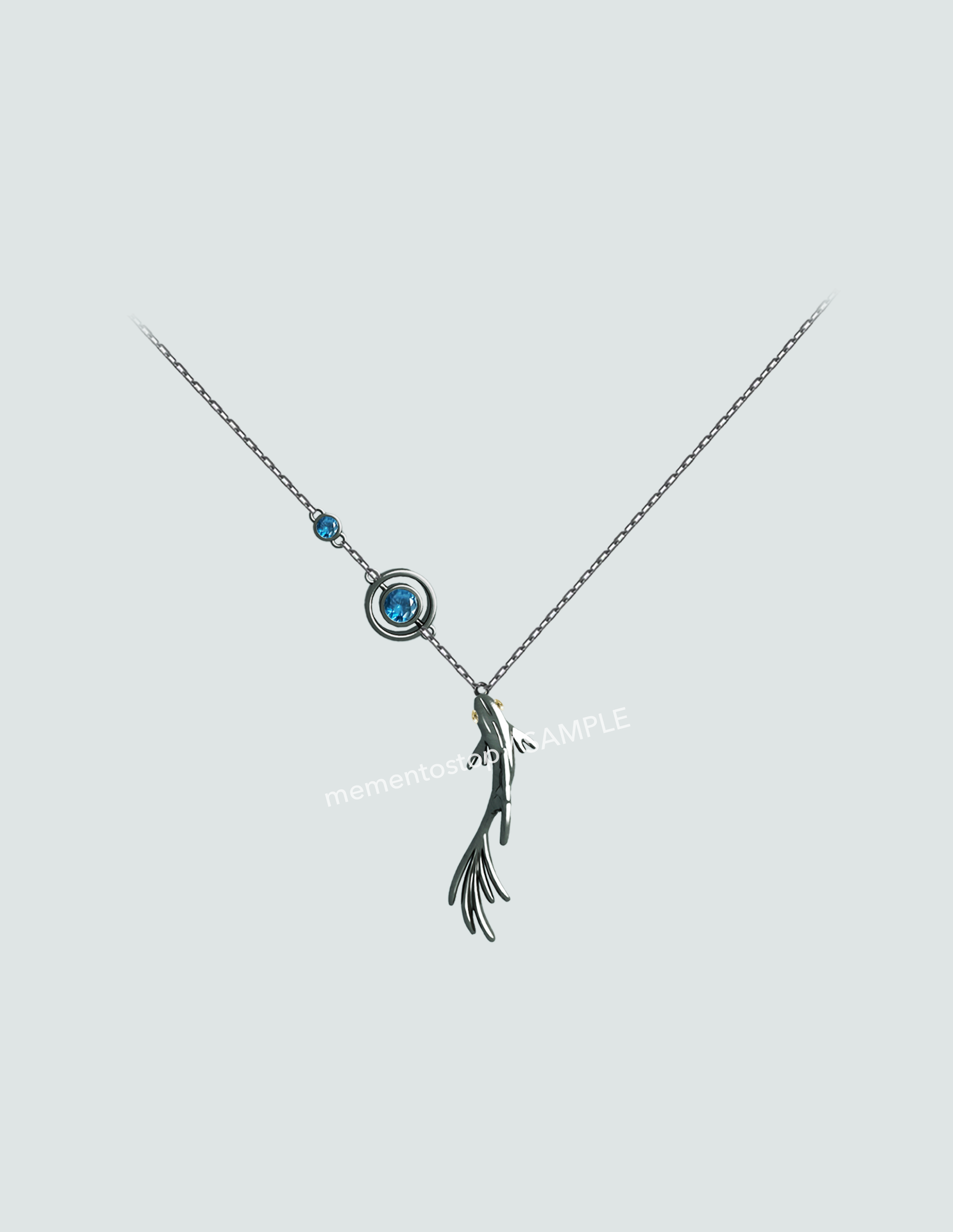 Capture the feeling of seishun, or 青春 (blue spring), with our matching necklace set, featuring black and white beta fishes. Delicately crafted sterling silver pendants bring the fish to life, while blue cubic zirconia stones symbolize water puddles, adding a touch of brilliance.